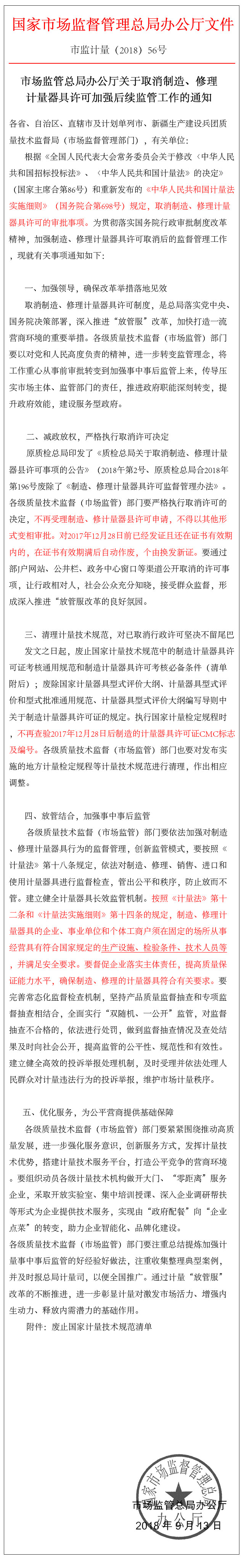 【西森】國家關于取消制造計量器具許可證的相關后續監管工作條文